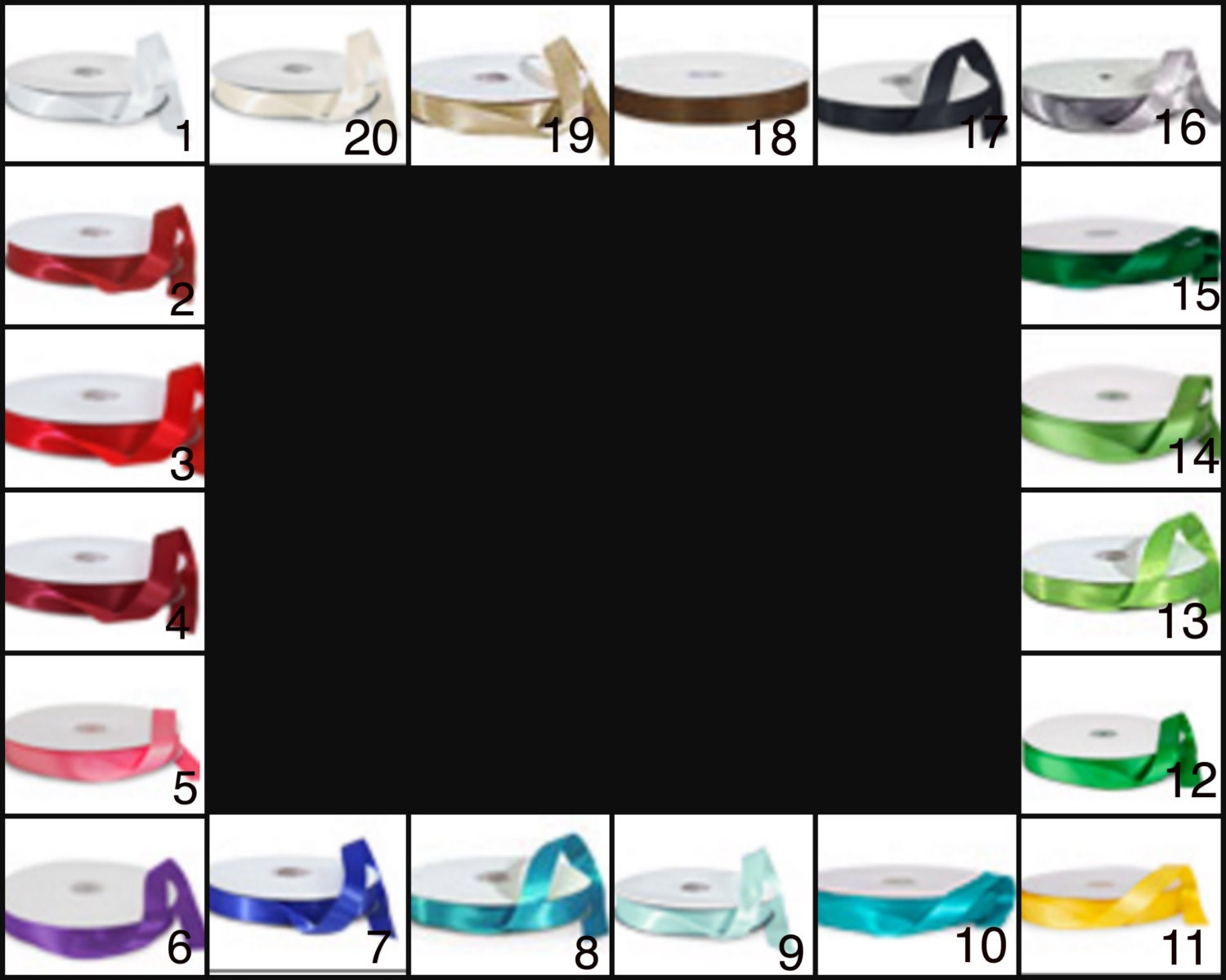 100 Quality 7/8" wide double sided satin ribbon for each color chosen (1 ribbon = 100, 2 ribbons = 200, 3 ribbons = 300, 4 ribbons = 400). Each ribbon is cut to 24" and heat sealed to prevent unraveling.