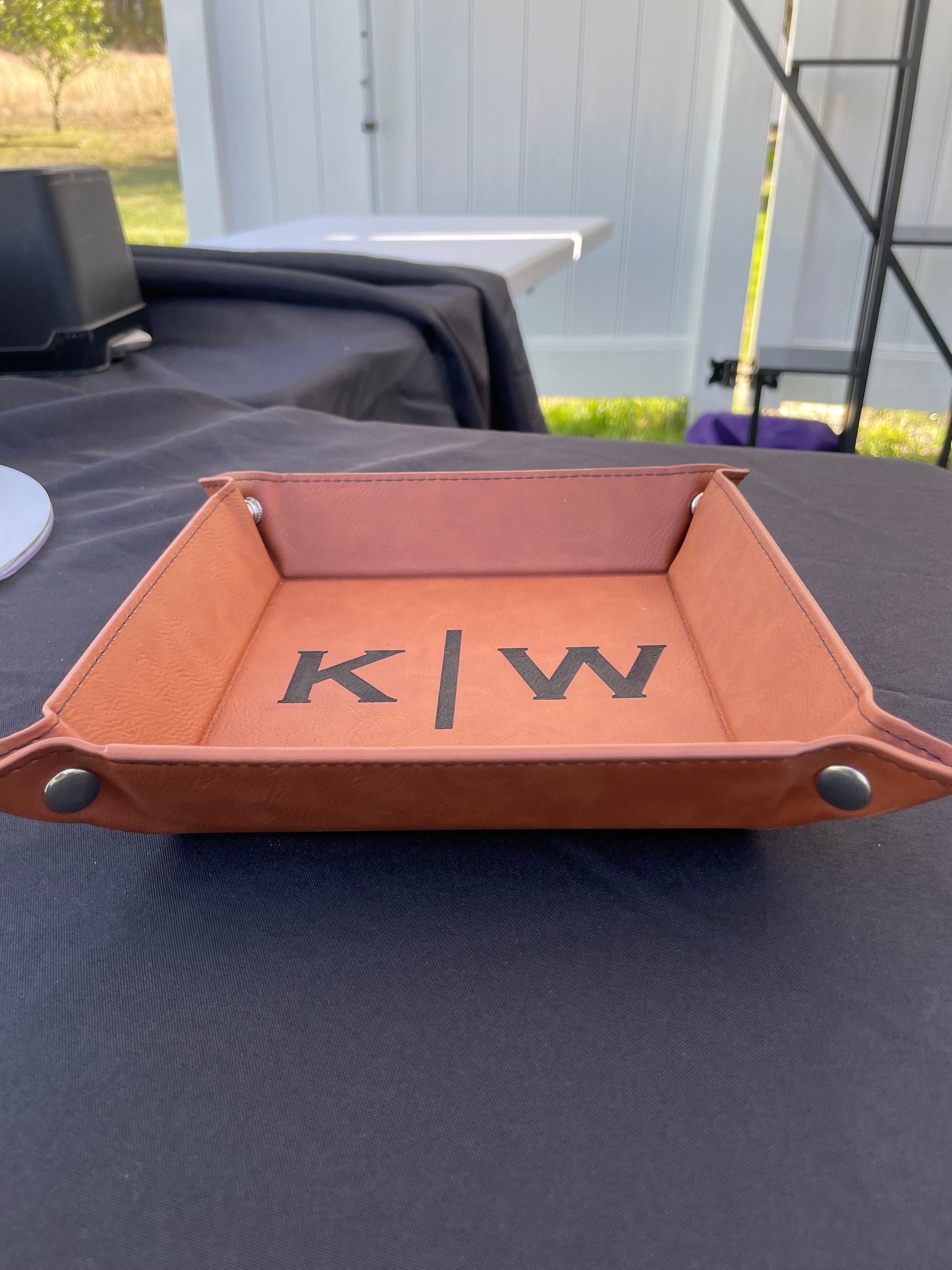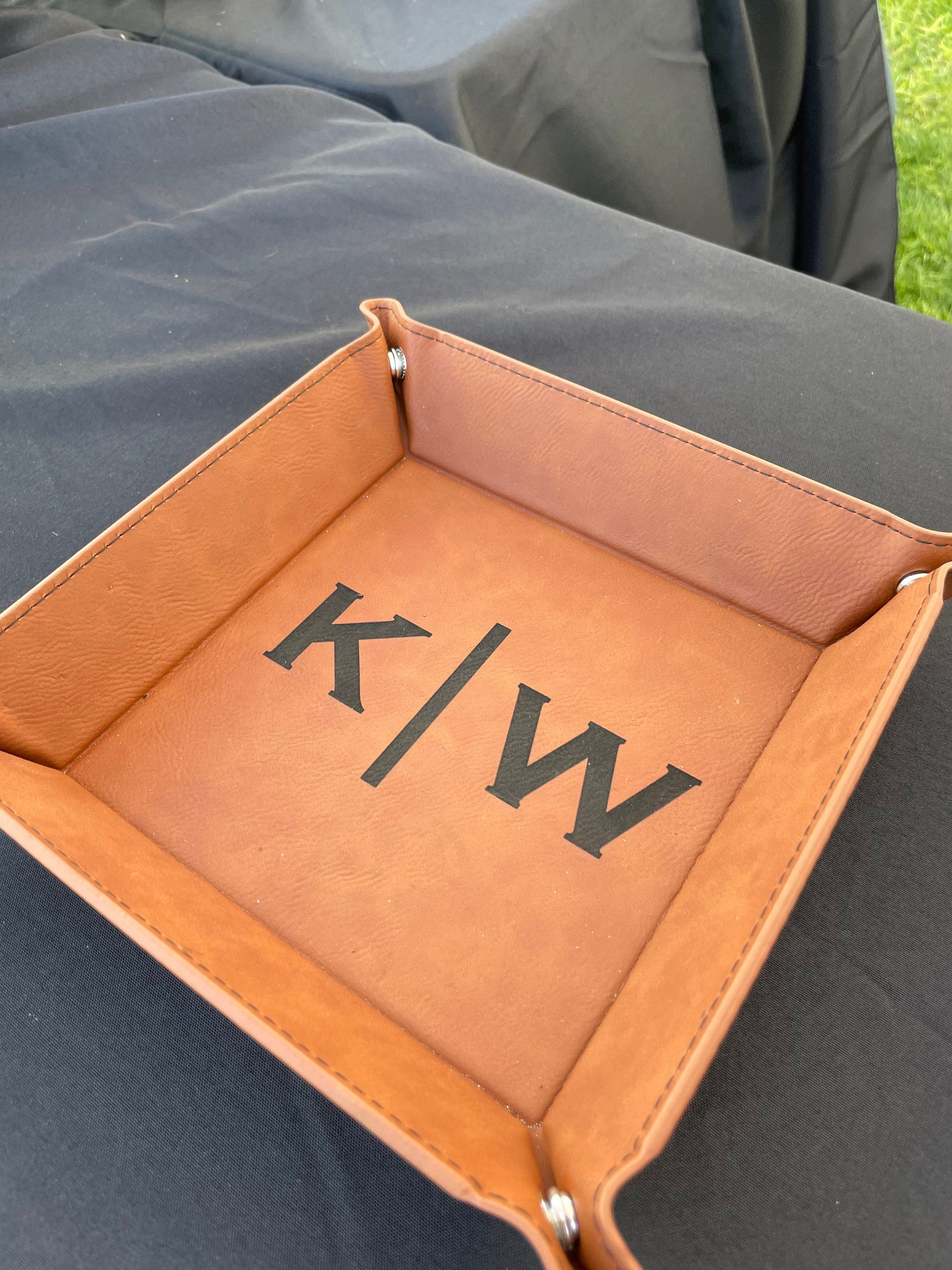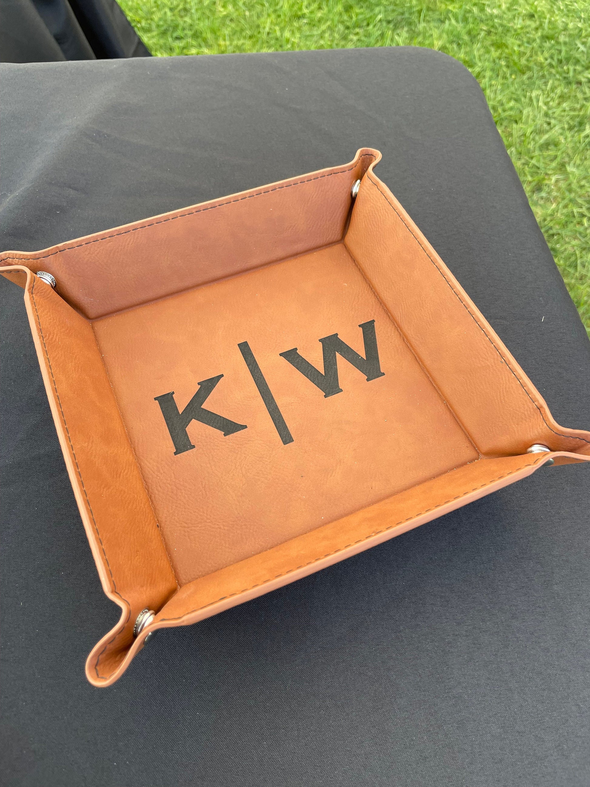 This personalized valet tray can be customized however you'd like! It will make a great gift for the groom or his party. You can use their name, title, or a special quote at no additional cost. Simply enter the information in the personalization box before checking out and we'll make it magical.