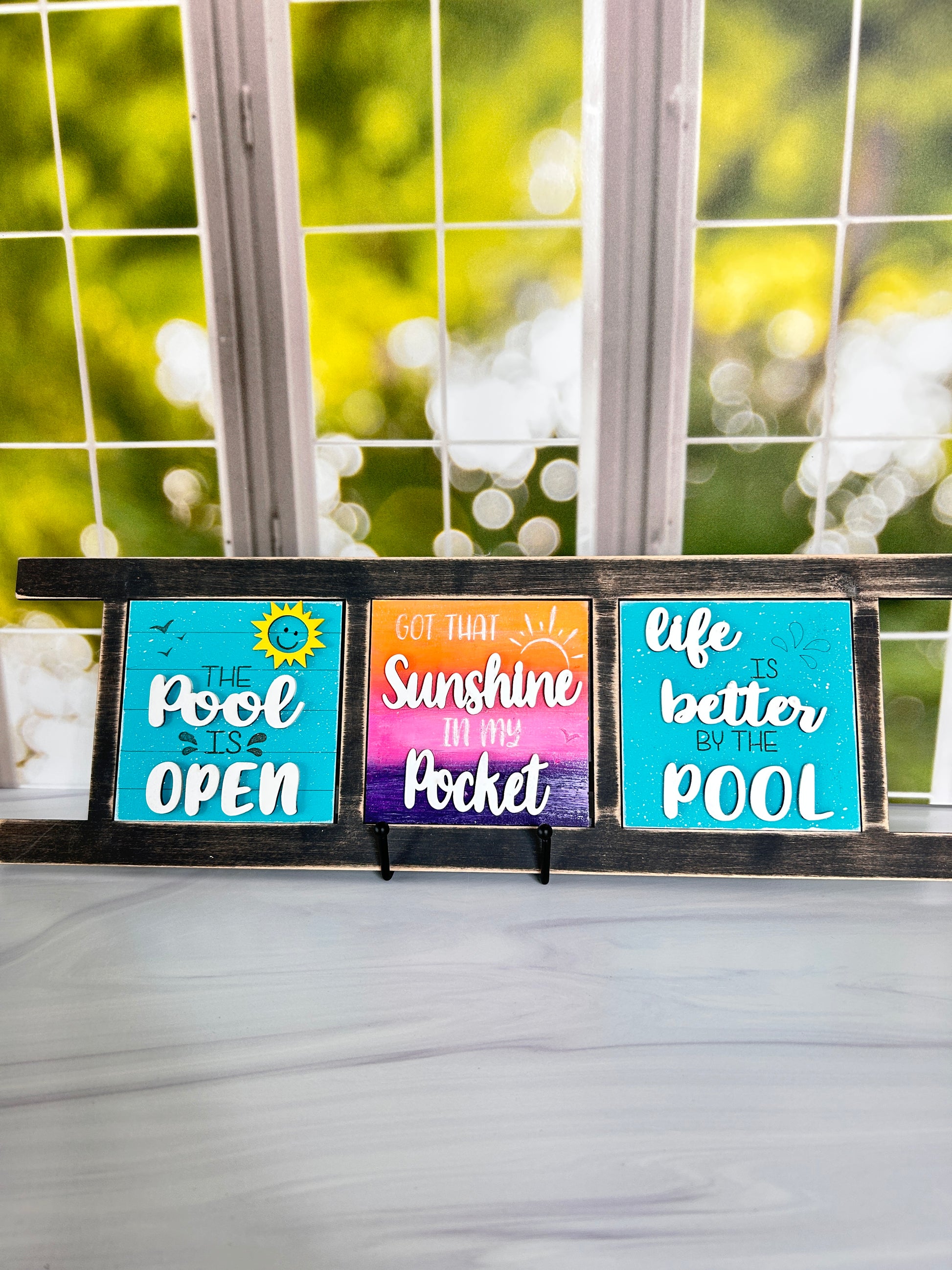 Our Triple Ladder Base is made to make a statement. Designed to hold three interchangeable tiles from the Tile & Trend Collection, this versatile piece lets you create themed sets, tell a seasonal story, or just show off more of what you love—all in one display.